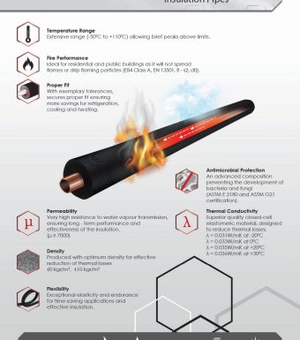 Insulating pipes contain high-density raw materials and they guarantee longevity and reduce heat loss in terms of heating, cooling, air conditioning.